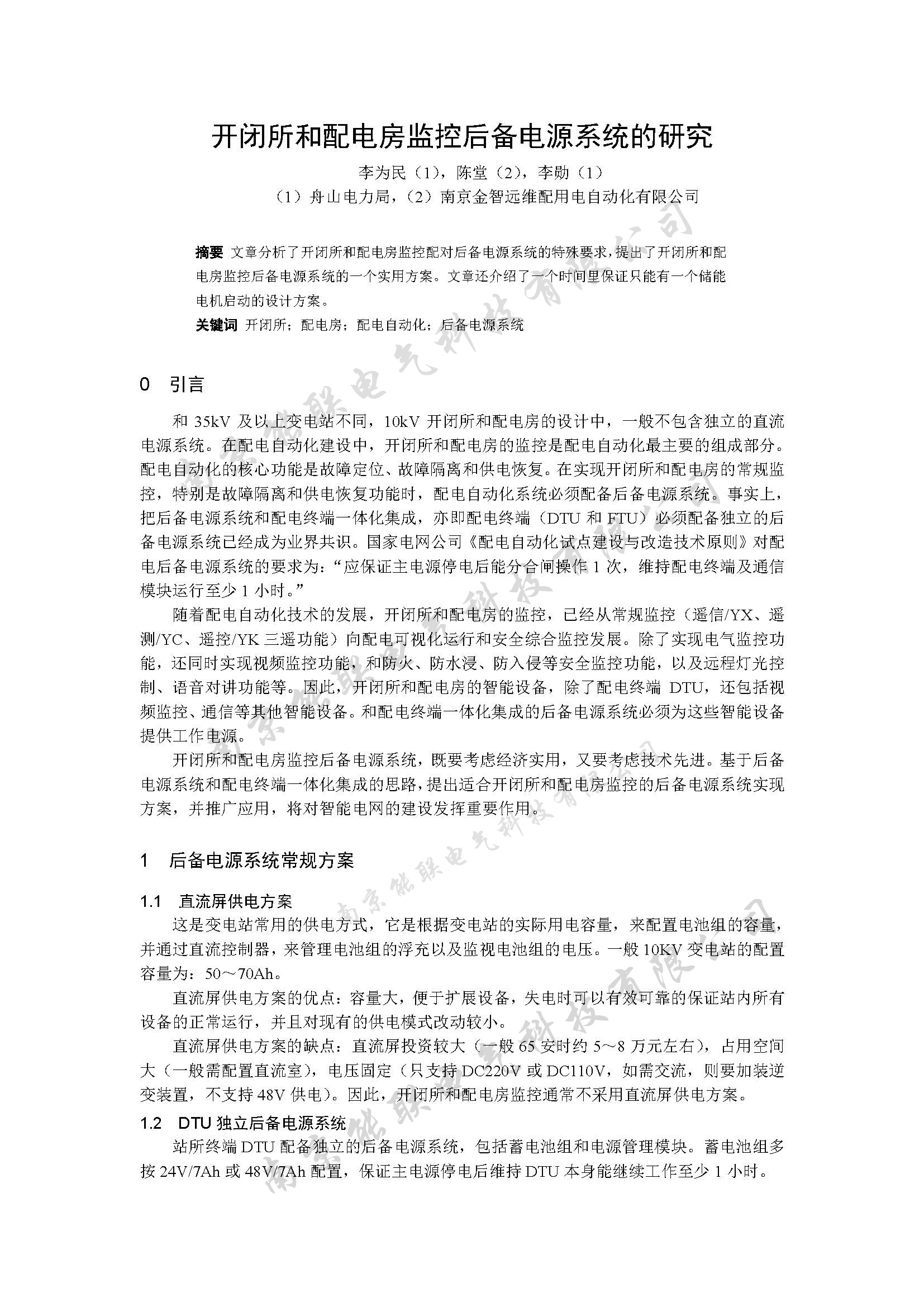 開(kāi)閉所和配電房監(jiān)控后備電源系統(tǒng)的研究