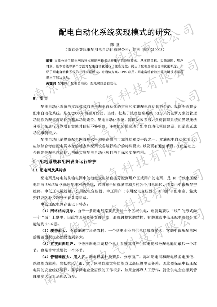 配電自動(dòng)化系統(tǒng)實(shí)現(xiàn)模式的研究